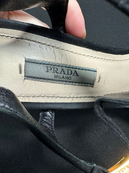 Authentic Prada Black Suede Slingback Stiletto Pumps